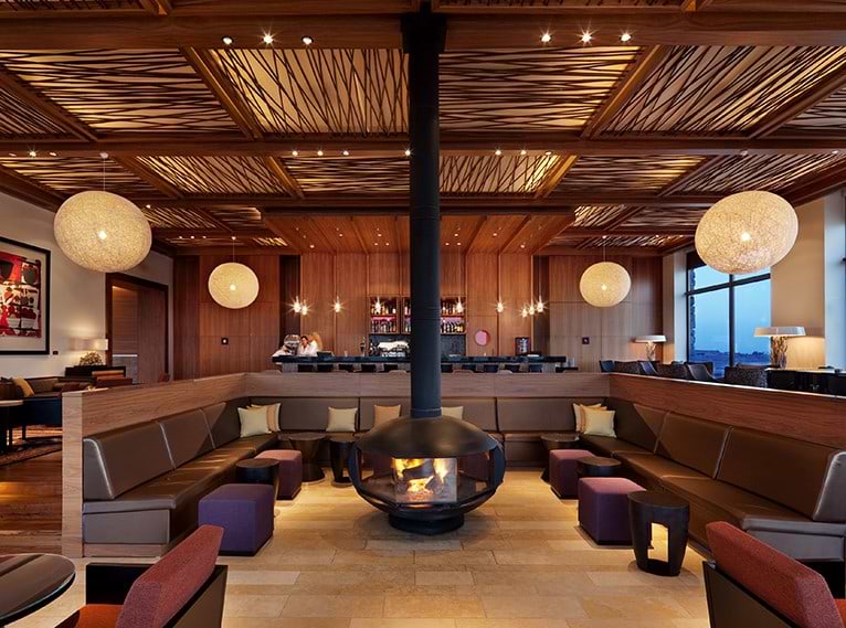 The lobby bar is a beautiful spot warmly designed with amazing outdoor views.