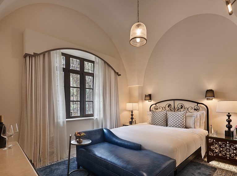 The two heritage buildings grant guests an exceptional hospitality experience surrounded by a truly unique ambiance, alongside many exclusive benefits: personal concierge from the moment of arrival, special chef's gift, daily newspaper delivered to the room, complimentary access to the deluxe business lounge (8th floor of the main hotel building), welcome cocktail in the room or at the Khan restaurant, tour of Jerusalem, and bicycles available for complimentary use